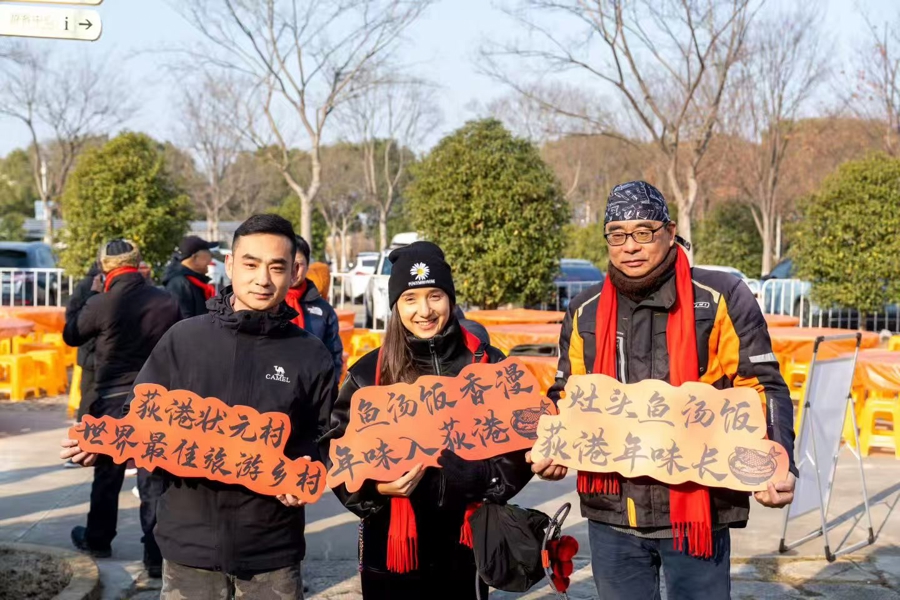 非遗的活化,从来不止于舌尖的滋味。在荻港村“非遗里的中国”线下陈列馆,9个非遗工坊里人头攒动,游客正跟着村民学习蚕茧灯制作、芦叶鱼头粽包裹等技艺,在一折一绕间触摸非遗温度。“‘非遗+体验’模式,为非遗的传播提供了新的路径。”陈列馆工作人员介绍,目前全村近五分之一的农户投身“研学人家”产业,开发捕鱼体验、鱼骨画制作、拓鱼砖等特色课程,接待国内外研学团队800多个、超10万人次。在这里,村民摇身变为非遗技艺的“活招牌”,通过手把手教学、面对面讲述,让游客在亲身体验中读懂古村文脉,更让原本藏于岁月中的传统文化拥有了可触、可感、可参与的鲜活模样。