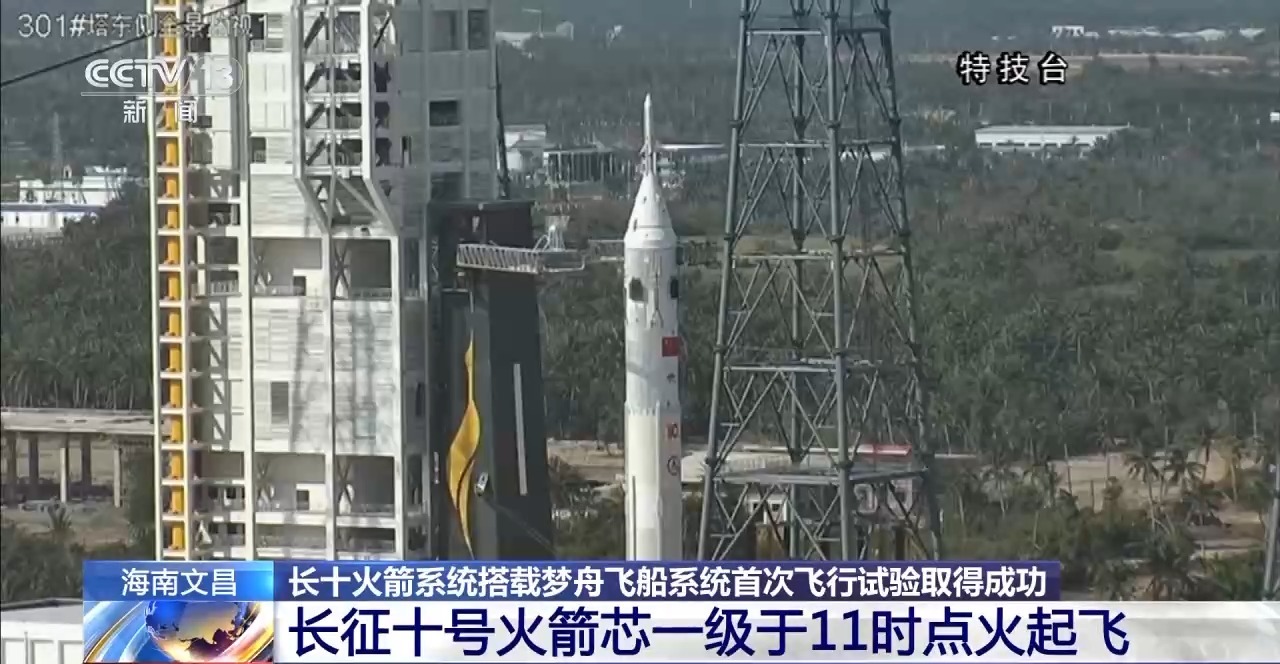 总台央视记者 王晓丹:在文昌航天发射场的指挥控制大厅,我们共同见证了搭载着梦舟载人飞船的长征十号运载火箭的首次飞行试验。